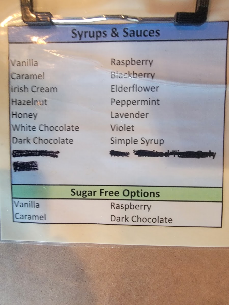 Latte with vanilla, caramel, and Irish cream syrups. Served on ice